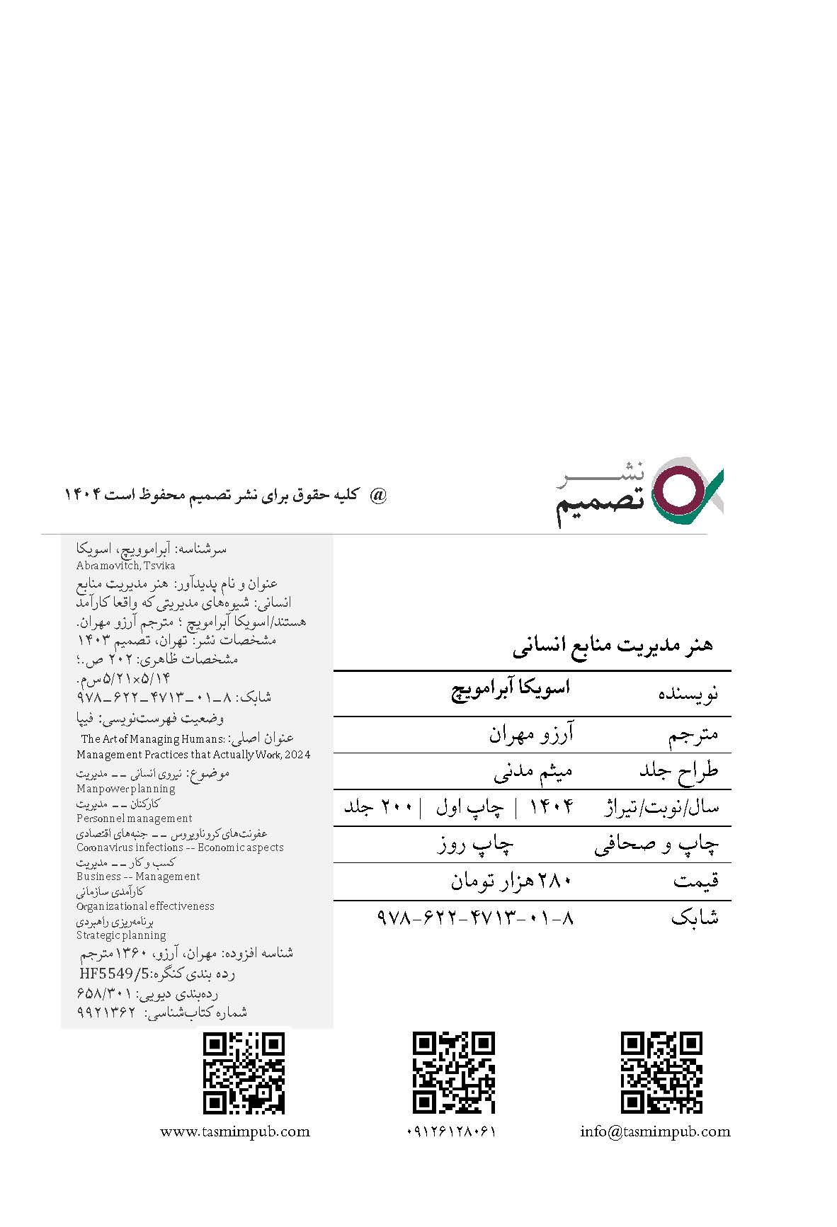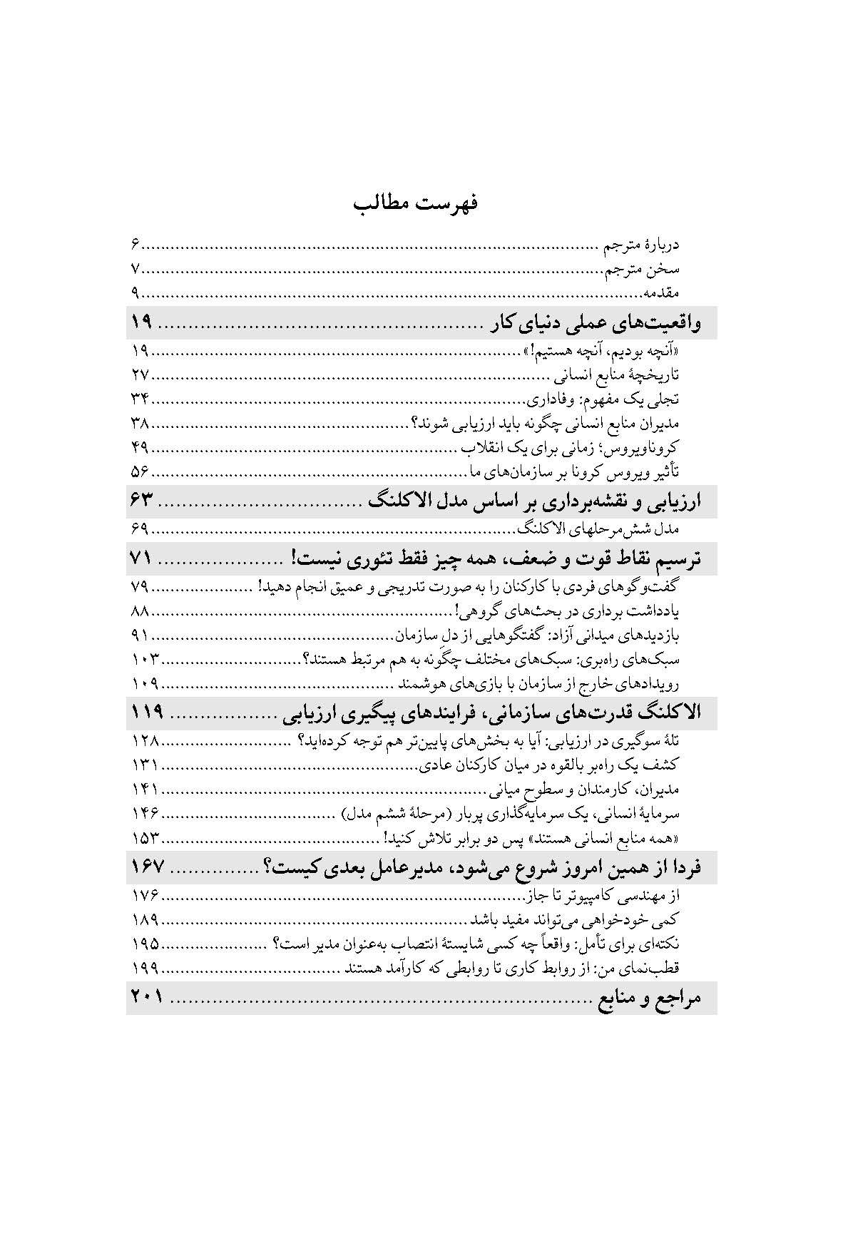 این کتاب در مورد تجربیات ملموس یک مدیر منابع انسانی در شرکتهای متعدد، قبل و بعد از دوران کرونا است و مطالعۀ آن برای مدیران عامل، مدیران منابع انسانی و کسانی که علاقهمند هستند روزی در موقعیت یک مدیر قرار گیرند از مدیران ارشد تا کسانی که قرار است در آینده سرپرست شوند، بسیار مفید خواهد بود.